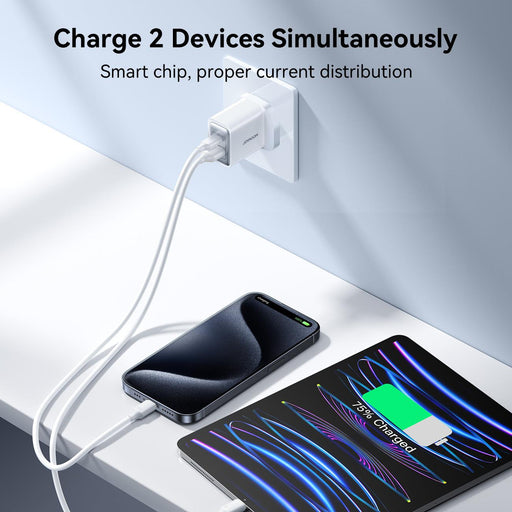 Joyroom JR-TCF15 30W Dual Port USB A + USB C Fast Wall Charger | White